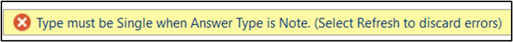 - Type = Multiple only applies to Answer Type = Multiple Choice or Answer Type = Text. If you try to set Type = Multiple on Answer Type Decimal or Note an error will be generated: