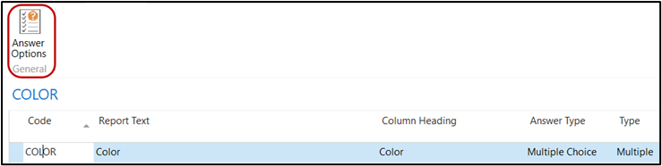 - Answer Type = Text with Type = Multiple indicates that only one Answer Option may be selected.