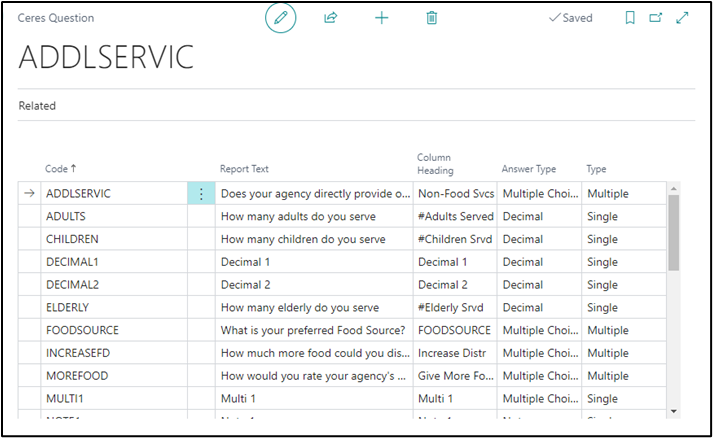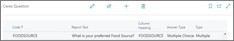 - The Ceres Question Page opens. A list of all questions currently defined will be displayed.