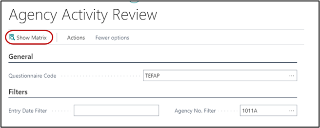 Note: If you wish to display previously entered results, you can set an Entry Date Filter and/or Agency No./No’s filter before viewing the Matrix.
