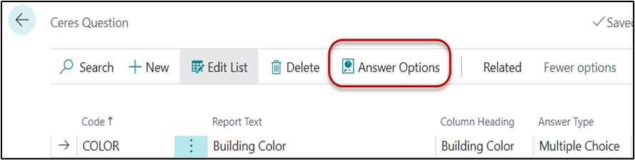 - Ceres Questions can be accessed by selecting “Search” from the Dynamics 365 Business Central Banner and entering “Ceres Question” in “Tell me what you want to do” then selecting “Ceres Question” from the results in the Go to Pages and Tasks section OR by selecting the “Ceres Question” menu action (if present) from your Role Center home page.