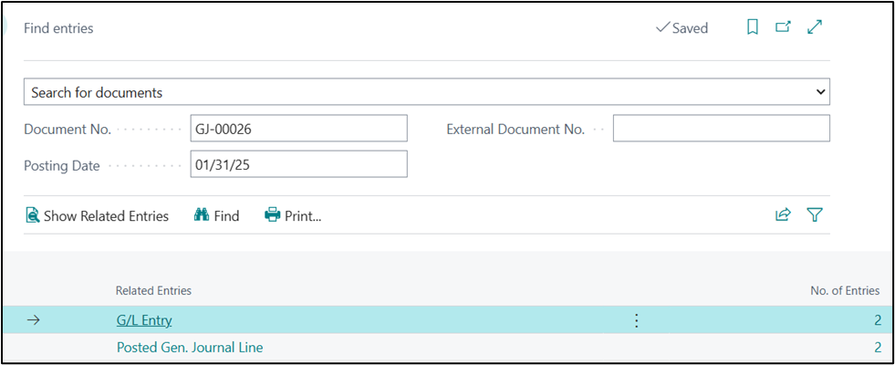 Note: For entries to display in Posted General Journals, the “Copy to Posted Jnl. Lines” field must be toggled for the Journal Batch the entries were posted from