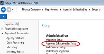 To access Agencies & Receivables Setup, select Departments à Agencies & Receivables à Administration à Setup à Agencies & Receivables Setup: