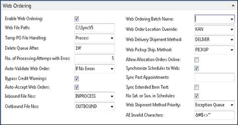 Web Ordering Batch Name: The batch all web orders will be placed in. If order batches are not being used, this field cannot be filled in.