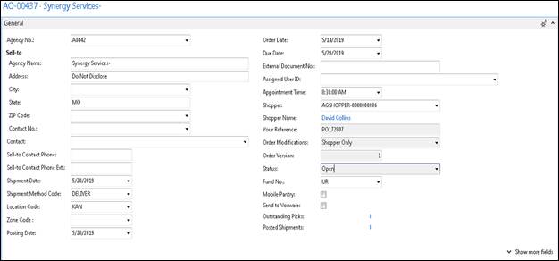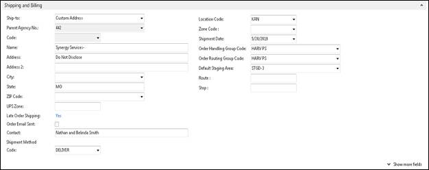 Shipment Method Code: The Shipment Method Code for the order. This field will default based upon the order’s Sell-to Agency or as defined in the Web Shipment Method Priority of Agencies & Receivables Setup. See earlier section on Agencies & Receivables Setup.