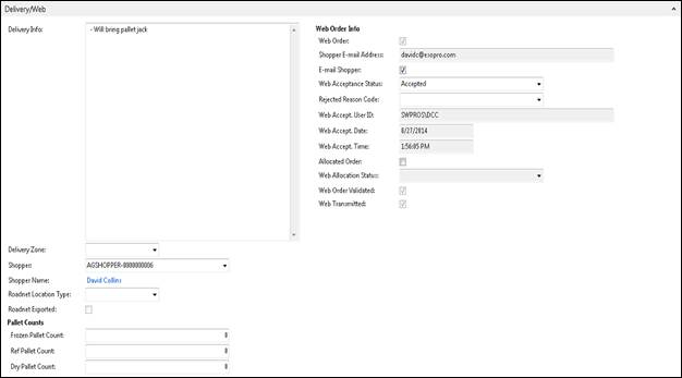 Upon validation, fields that were previously left blank will now be filled in. Also, on the Delivery/Web tab, the Web Order Validated field will be checked. Ultimately, this is your indication that the web order has been validated and can be processed.