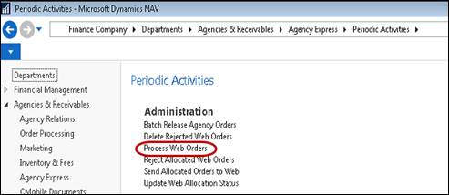 Note: The Managing Web Orders section only applies to Agency Express 3. When using Agency Express 4 all web orders are automatically validated and accepted.