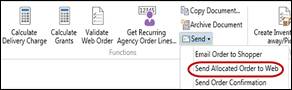 - Once satisfied with the order, select Actions à Functions à Send à Send Allocated Order to Web.