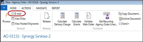 This will send a generic e-mail (defined in A&R Setup) with a .pdf copy of the order attached. This function can be used as many times as needed per order.